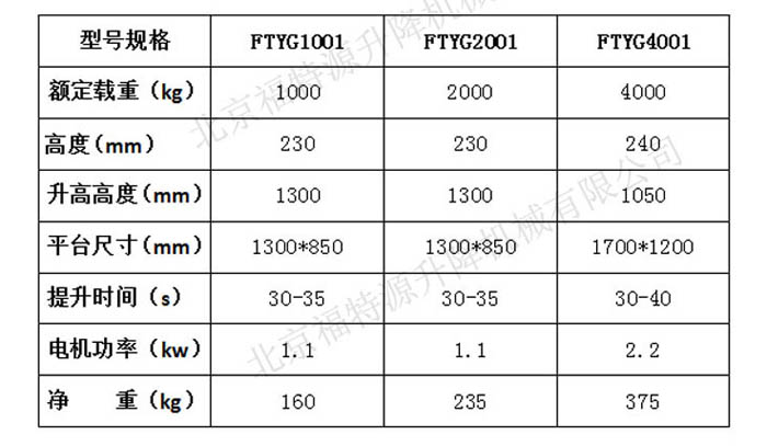 固定式電動升降機常規參數 / Product Parameter